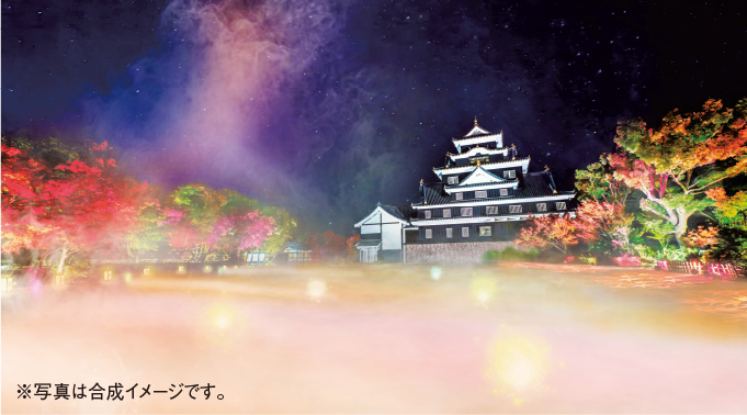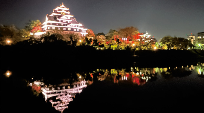 今年の秋の烏城灯源郷は岡山城とその周辺を秋らしい色合いででライトアップ。