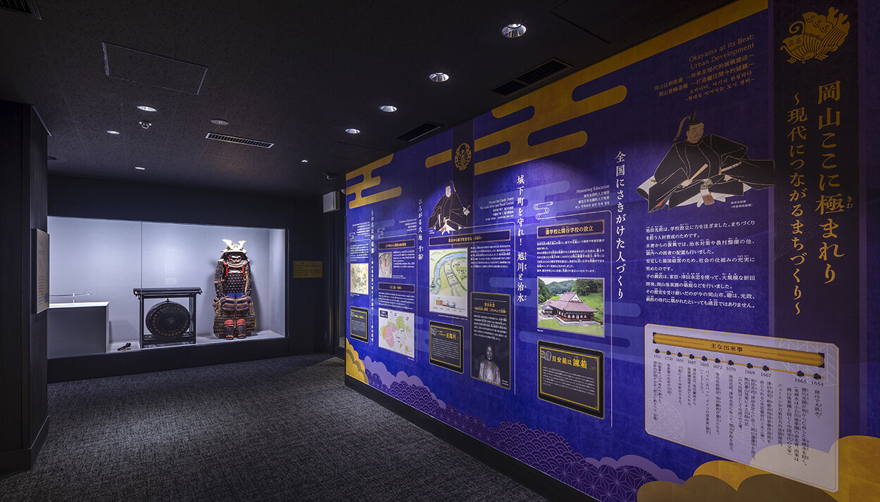 自ら先頭に立って政治改革を行い、人づくり、まちづくりを極めようとした池田光政。後楽園をつくり、干拓で大地を拡げた池田綱政。そして、2 人の後を継ぎ、岡山を治めた池田家歴代の当主たち。ここでは、今の岡山につながる、まちの礎がいかにして築かれたのかを貴重な歴史資料とともに紹介しています。