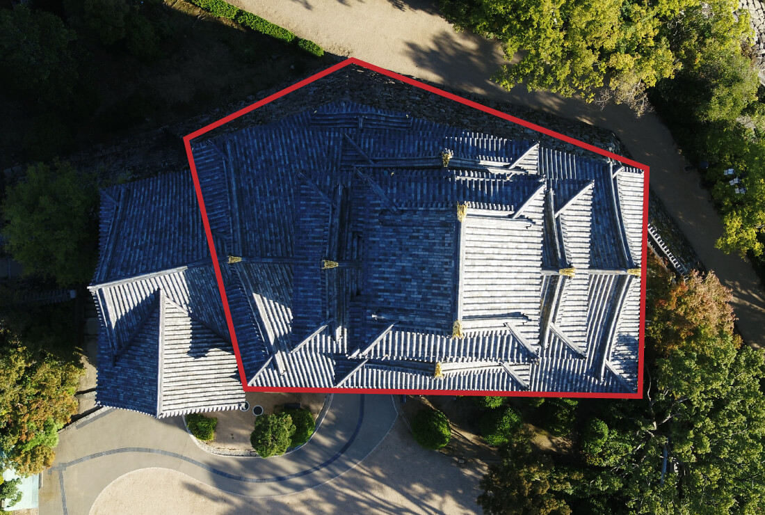 さらに、天守の石垣や1階の平面が不等辺五角形をしているのも特徴の1つで、土台になった岡山の丘の地盤にあわせたためといわれています。さらに、西側には付櫓として塩蔵が付属し、天守への入口がありました。